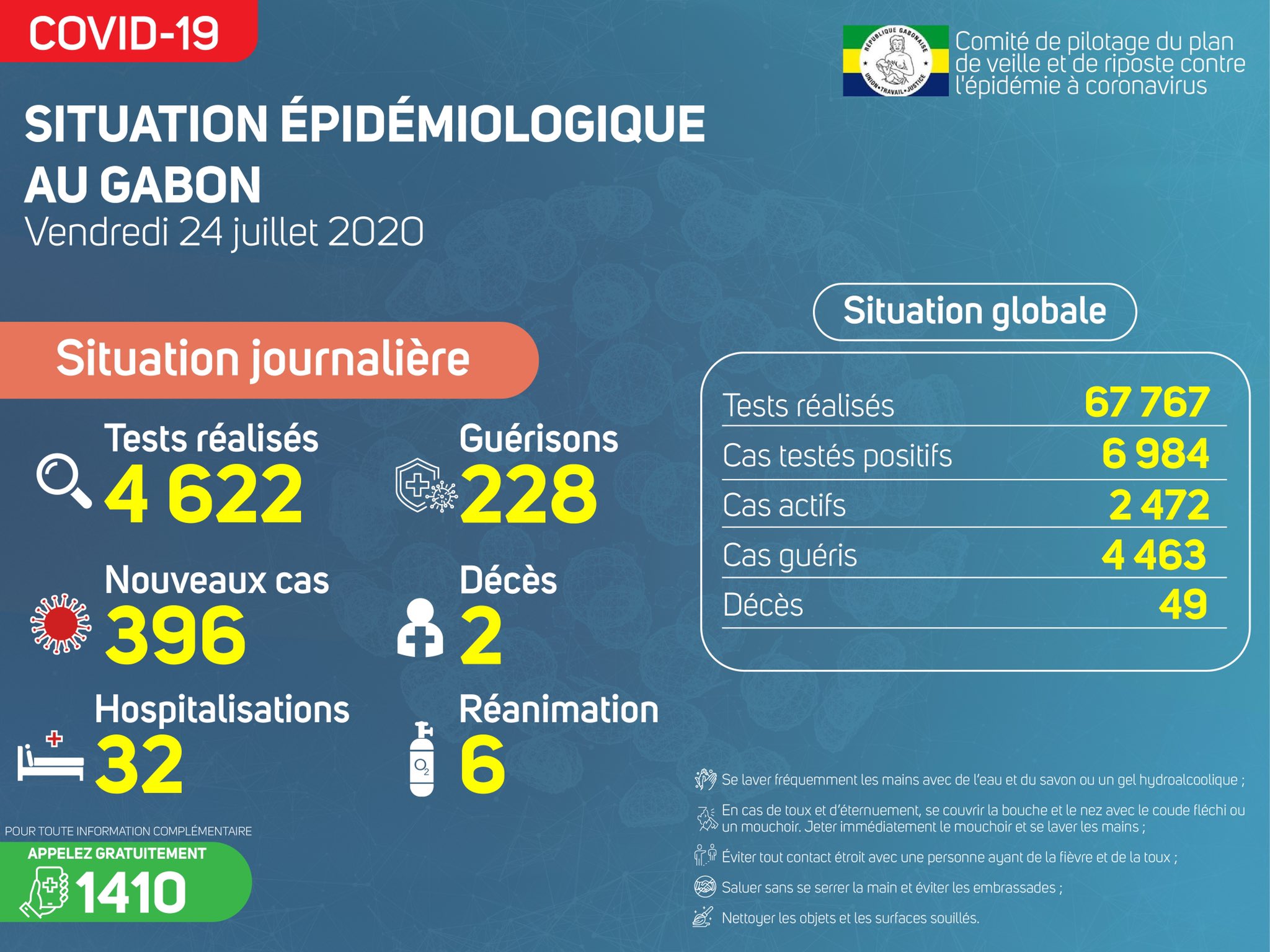 Coronavirus - Gabon : Mise à jour du cas COVID-19 (24 juillet 2020)