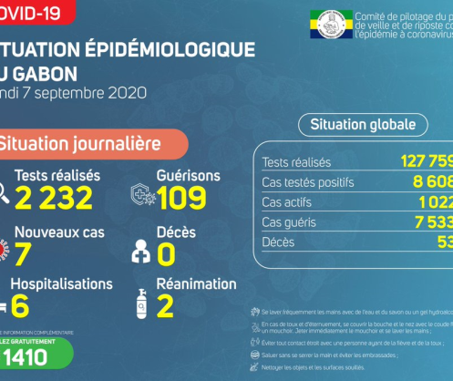 • Coronavirus - Gabon : Situation Épidémiologique au Gabon (07 septembre 2020)