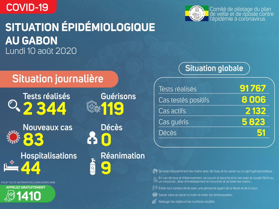 • Coronavirus - Gabon : Situation Épidémiologique au Gabon (10er août 2020)