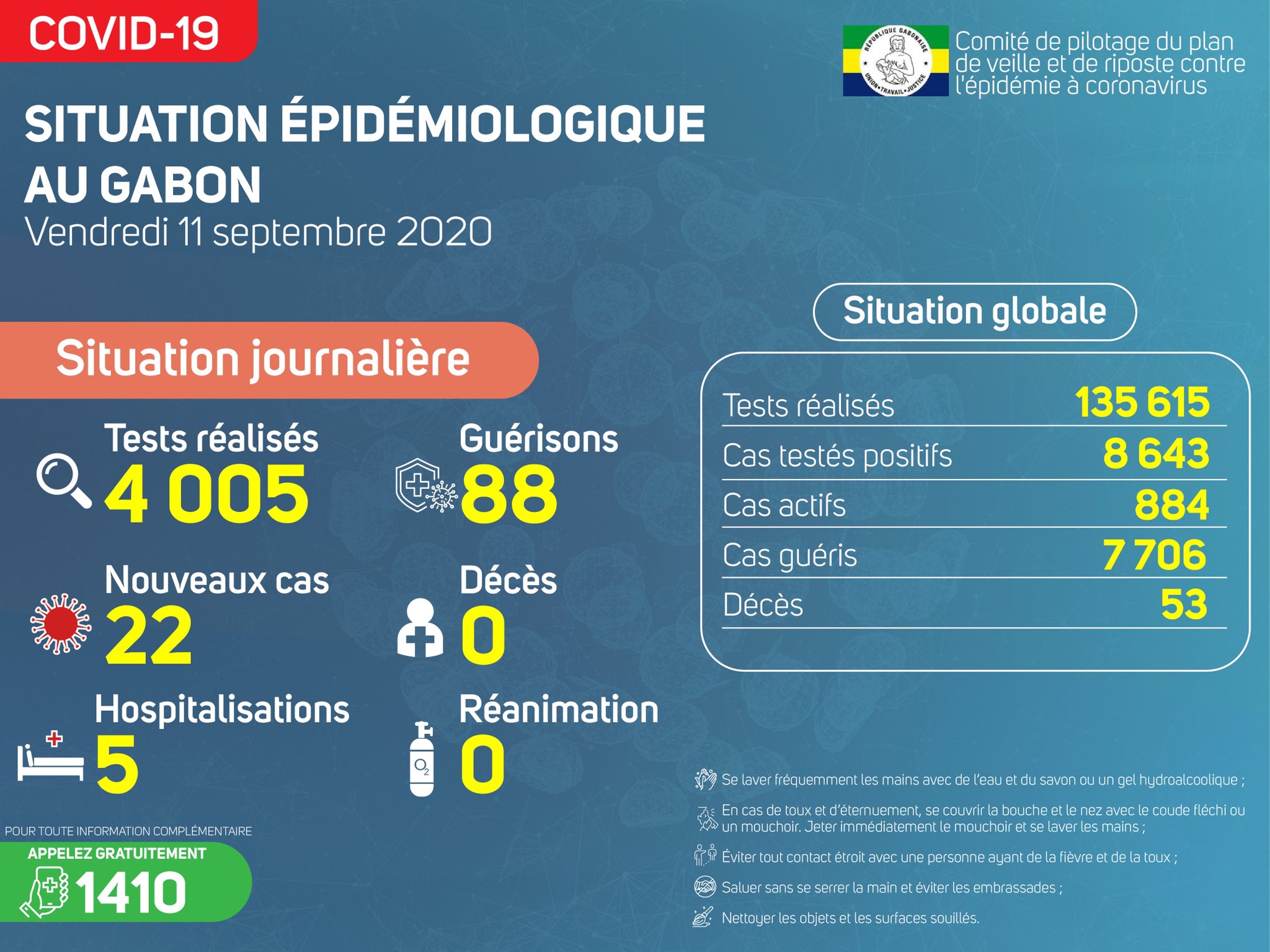 Coronavirus - Gabon : Situation Épidémiologique au Gabon (11 septembre 2020)