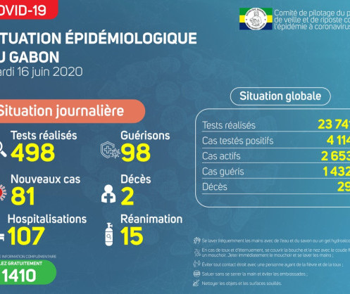Coronavirus - Gabon : Situation Épidémiologique au Gabon, 16 juin 2020