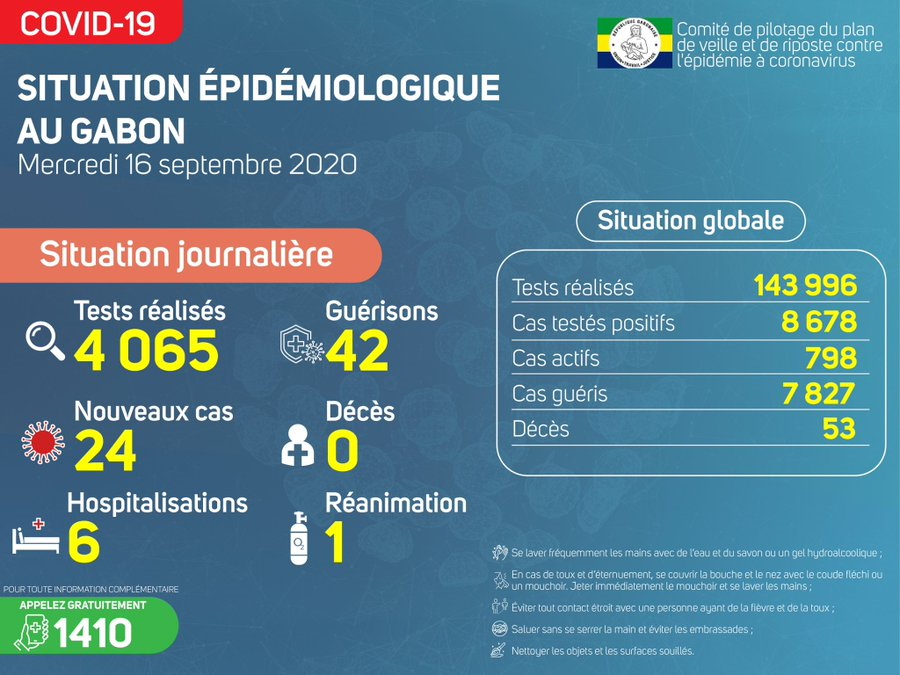 • Coronavirus - Gabon : Situation Épidémiologique au Gabon (16 septembre 2020)