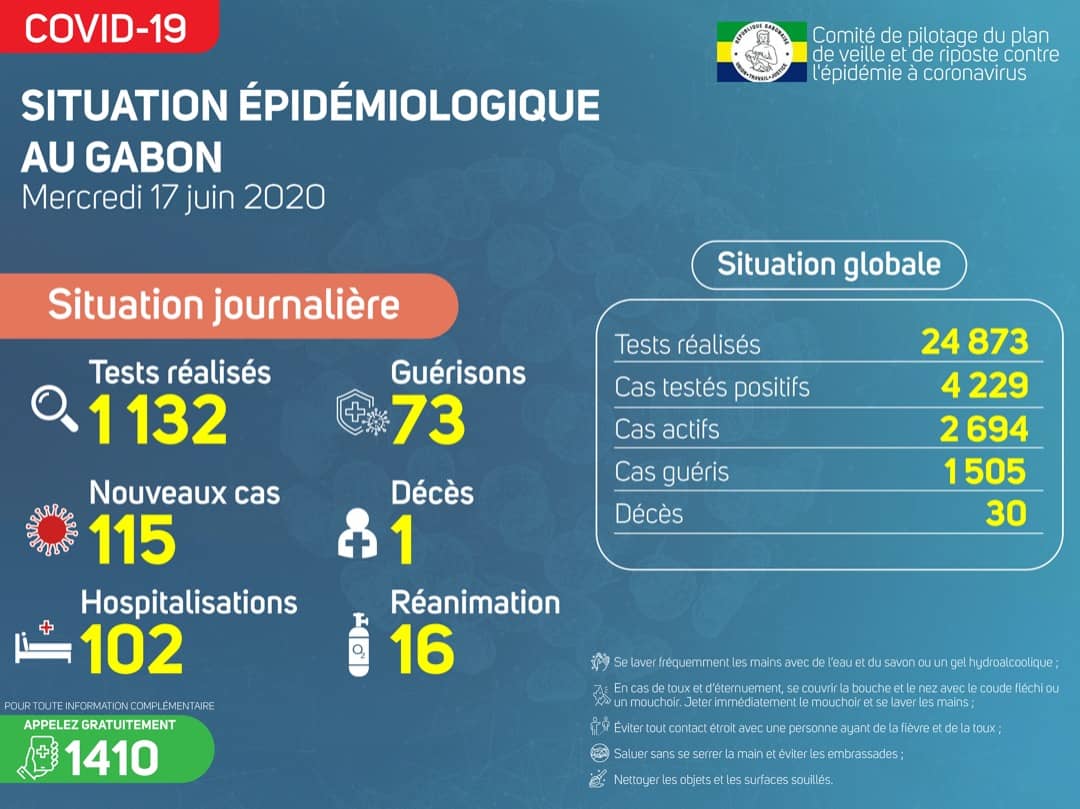 Coronavirus - Gabon : Situation Épidémiologique au Gabon, 17 juin 2020