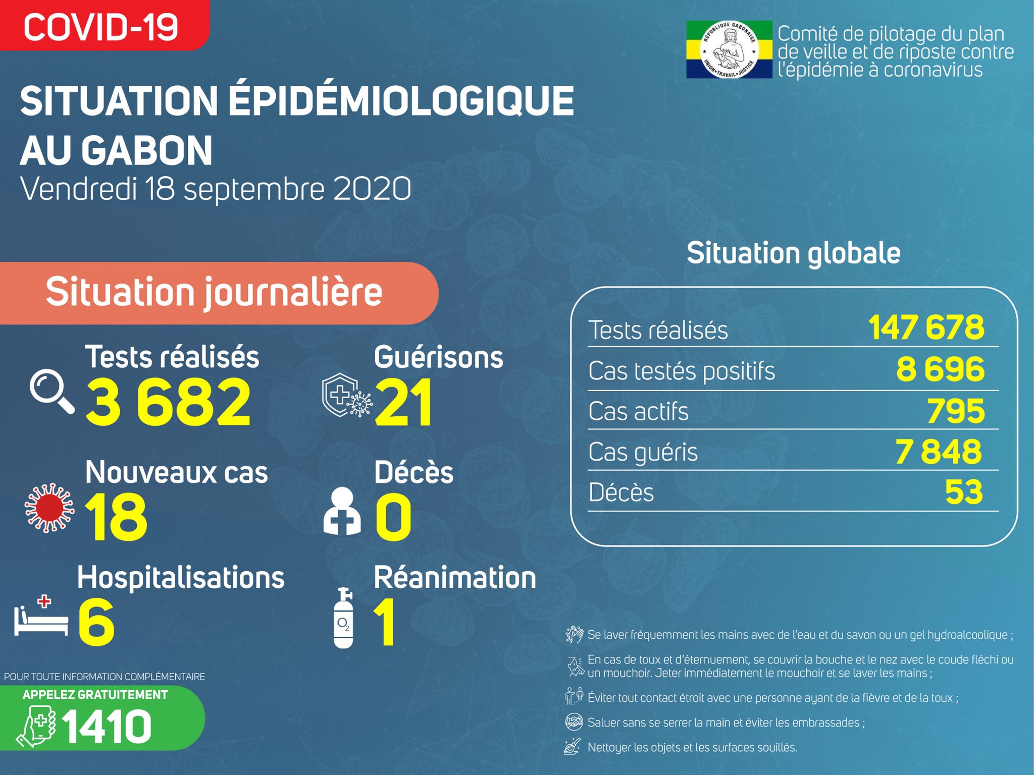 • Coronavirus - Gabon : Situation Épidémiologique au Gabon (18 septembre 2020)