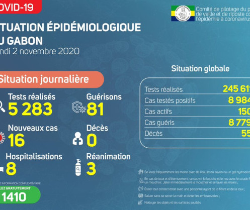 Coronavirus - Gabon : Situation Épidémiologique au Gabon (2 novembre 2020)