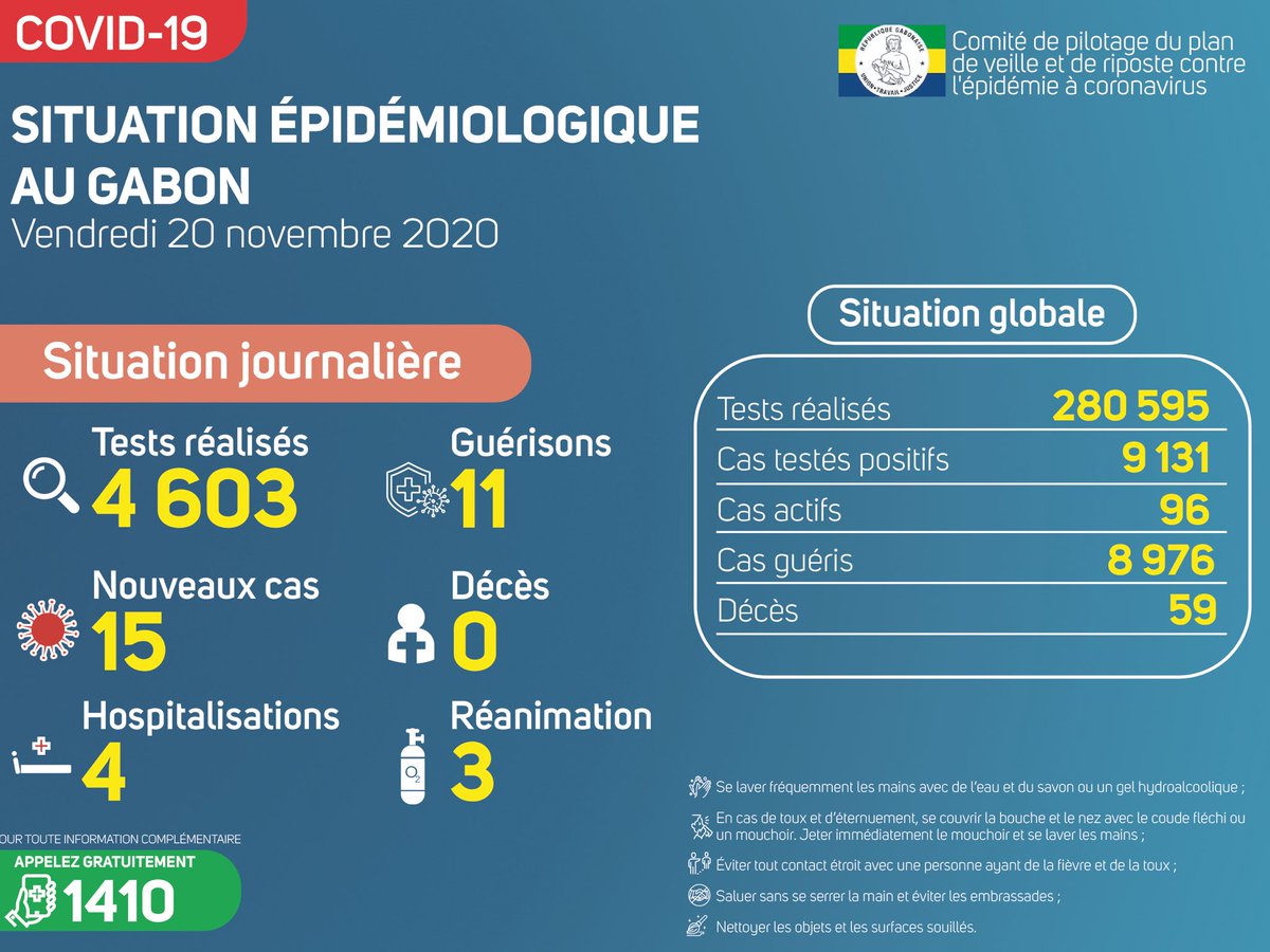• Coronavirus - Gabon : Situation Épidémiologique au Gabon (20 novembre 2020)