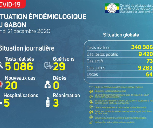 Coronavirus - Gabon : Situation Épidémiologique au Gabon (21 décembre 2020)