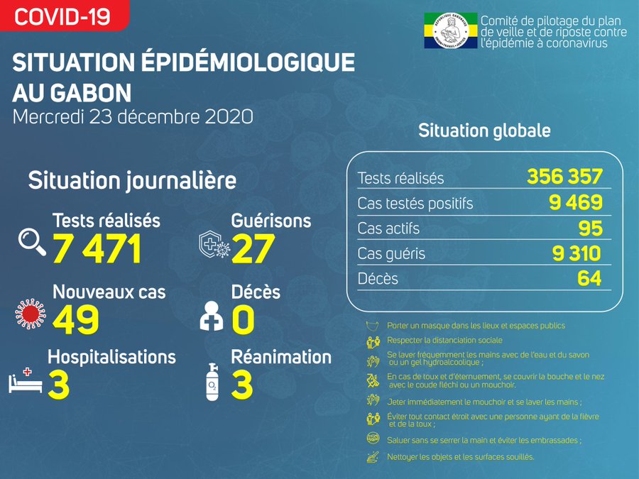 • Coronavirus - Gabon : Situation Épidémiologique au Gabon (23 décembre 2020)