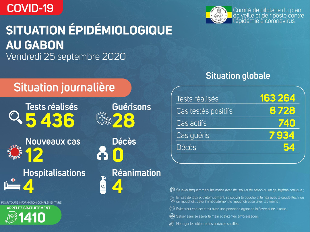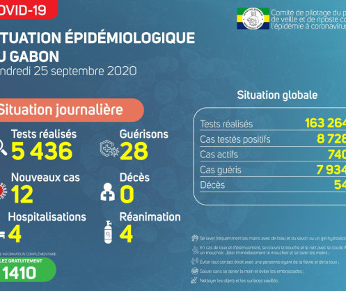 • Coronavirus - Gabon : Situation Épidémiologique au Gabon (25 septembre 2020)
