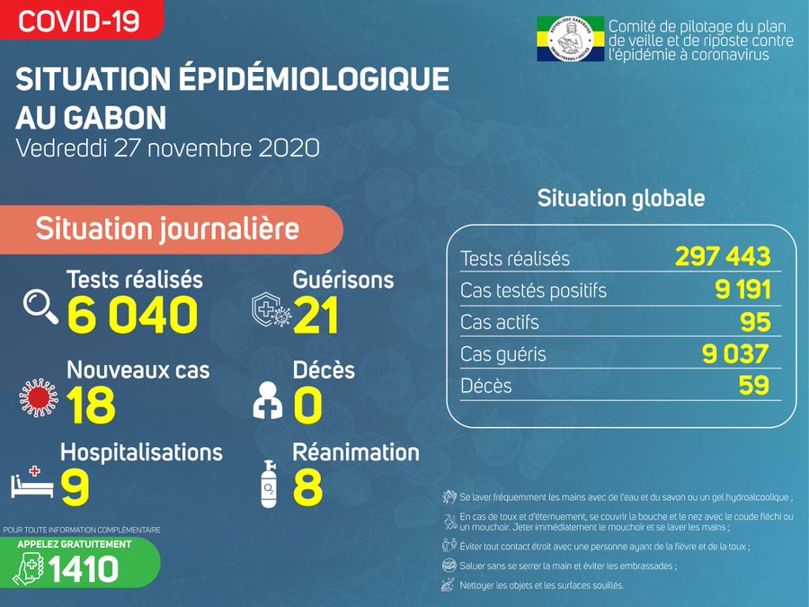 • Coronavirus - Gabon : Situation Épidémiologique au Gabon (27 novembre 2020)