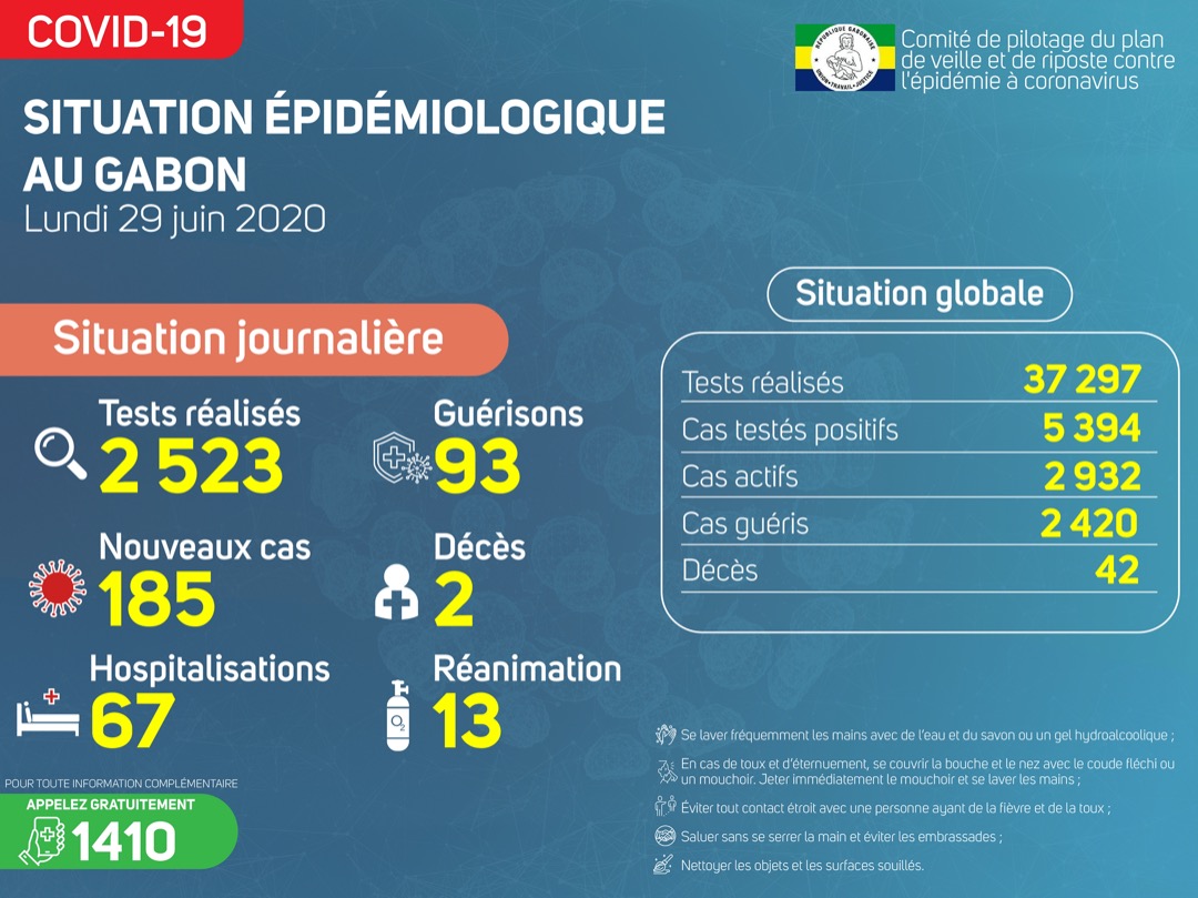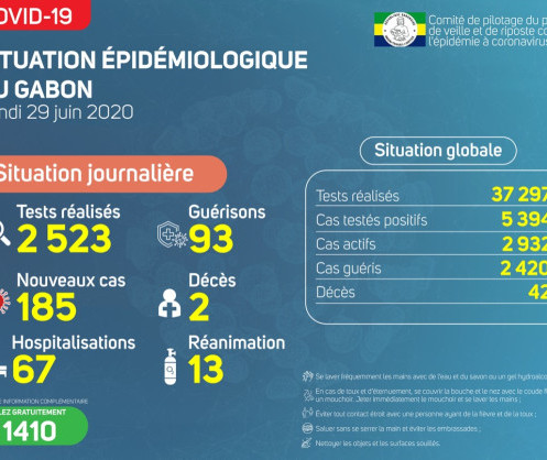 Coronavirus - Gabon : Situation Épidémiologique au Gabon, 29 juin 2020