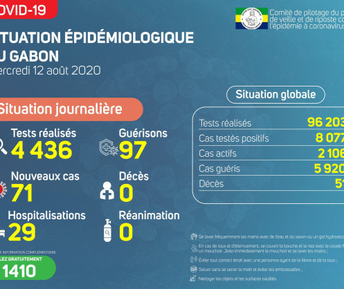 Coronavirus - Gabon : Situation épidémiologique du lundi 12 août 2020