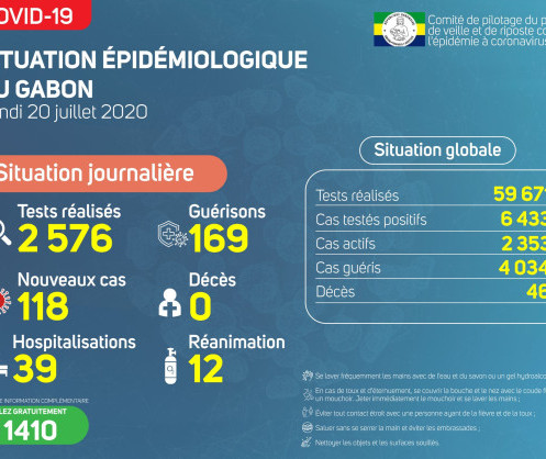 Coronavirus - Gabon : Situation épidémiologique du vendredi 20 juillet 2020