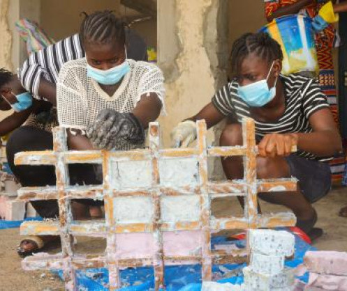 • Seven months after the fatal shipwreck, survivors and family members are coming together to manufacture soap in support of the country’s COVID-19 response. © IOM/Assan Jobe