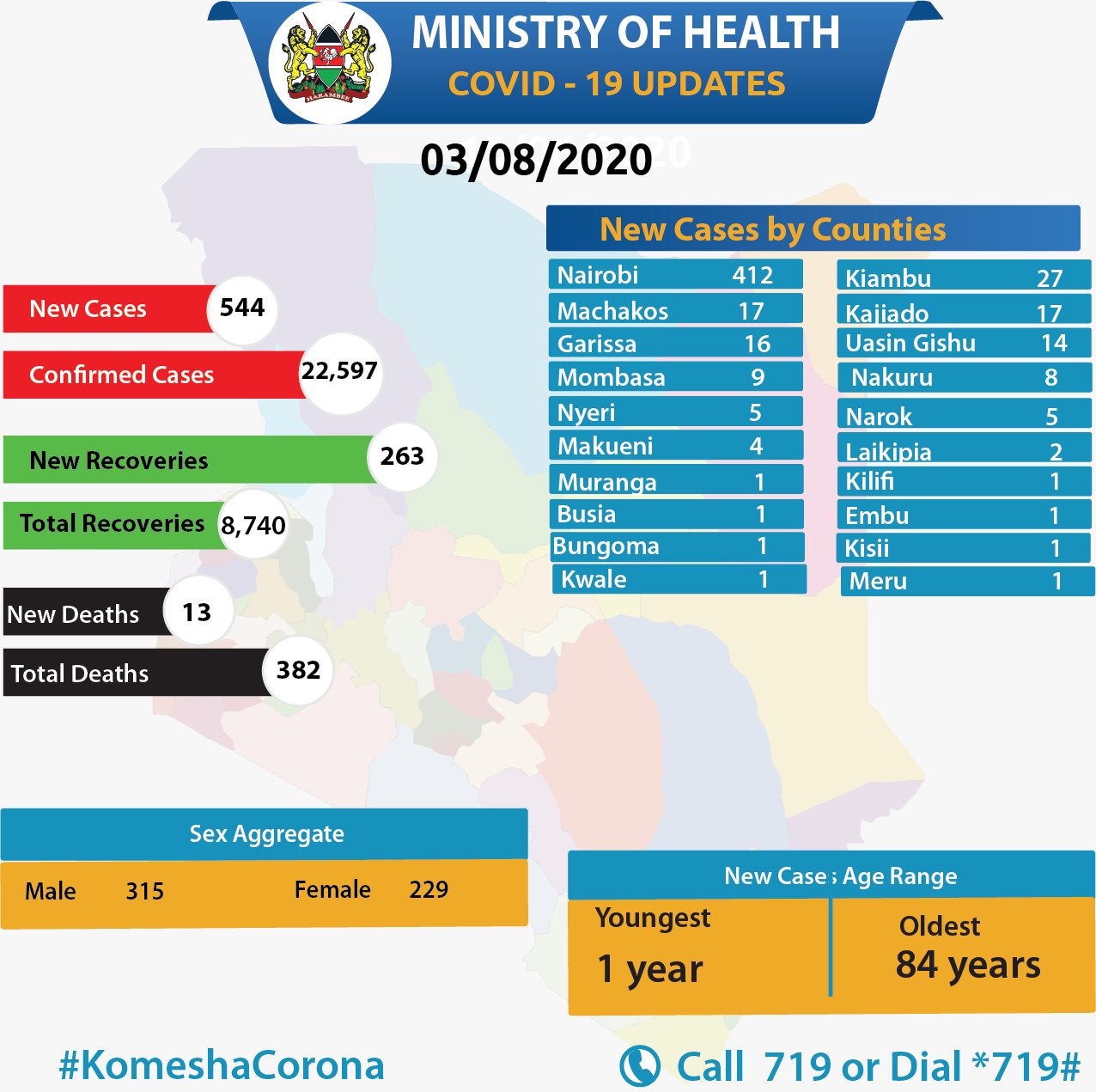 Coronavirus - Kenya: COVID-19 Update (03 August 2020)