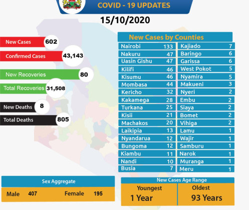 Coronavirus - Kenya: COVID-19 update (15 October 2020)