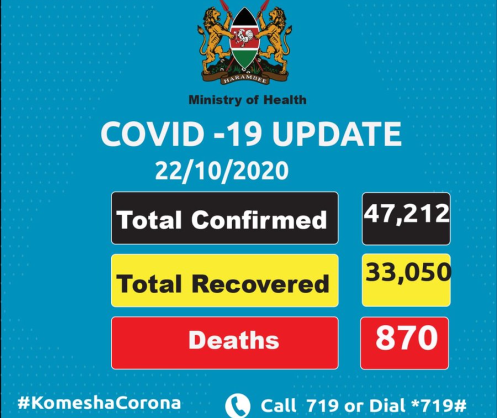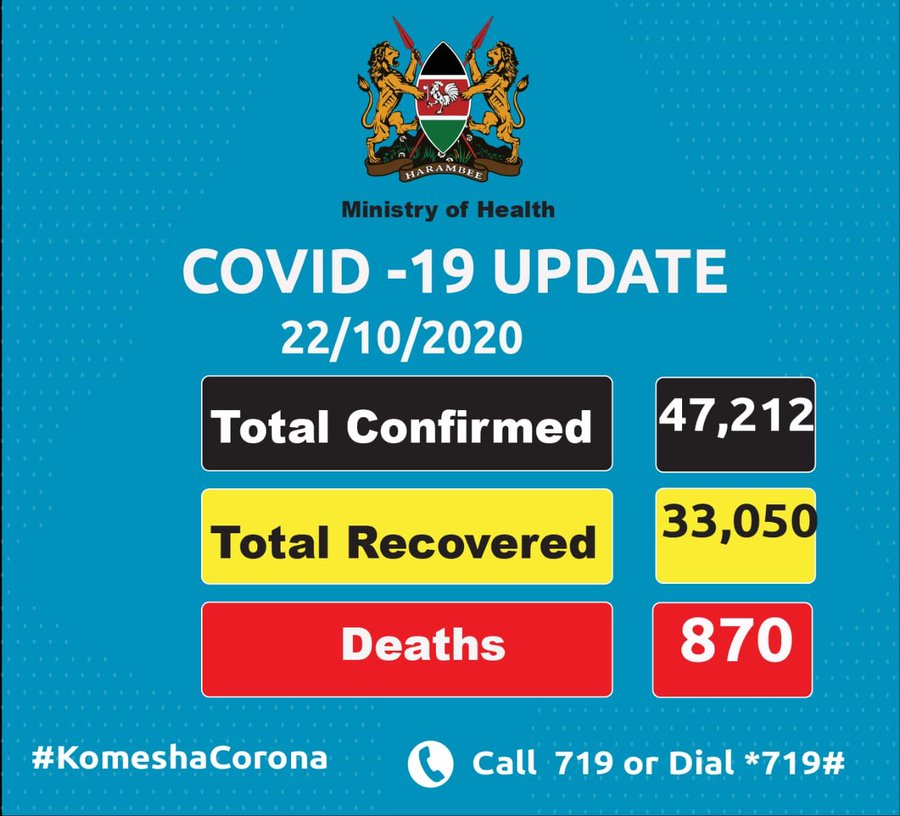 Coronavirus - Kenya: COVID-19 update (22 October 2020)