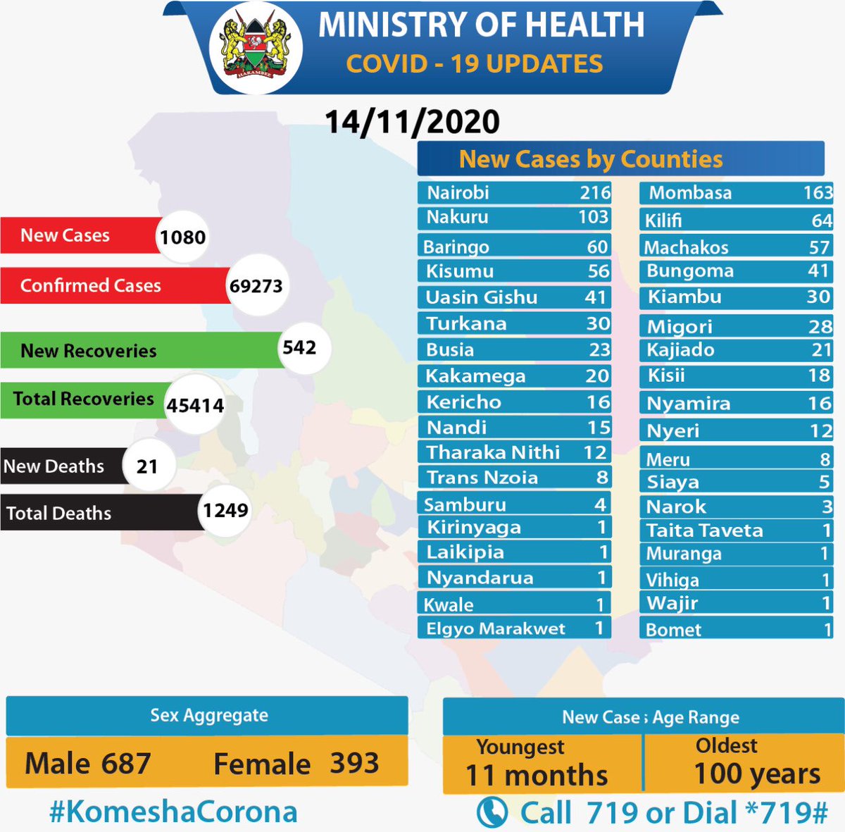 Coronavirus - Kenya: COVID-19 updates (14 November 2020)