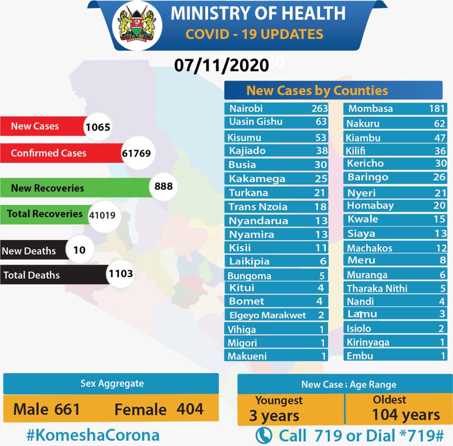 Coronavirus - Kenya: COVID-19 updates (7 November 2020)