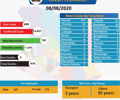 CS. Kagwe: This brings the Country's cumulative numbers of those tested to 349,307. From the new cases, 675 were Kenyans, while 24 were foreigners.