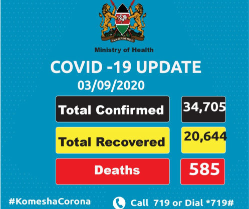 • Coronavirus - Kenya: Total confirmed COVID-19 cases in Kenya is 34,705