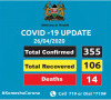 Coronavirus - Kenya: Update - 26 April 2020 NAIROBI, Kenya, April 26, 2020/APO Group/ -- Total Confirmed - 355 Total recovered - 106 Deaths - 14 Distributed by APO Group on behalf of Ministry of Health, Kenya.