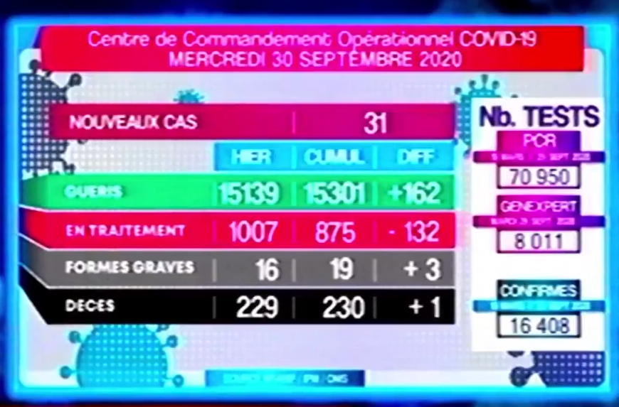 Coronavirus - Madagascar : Situation du 30 Septembre 2020