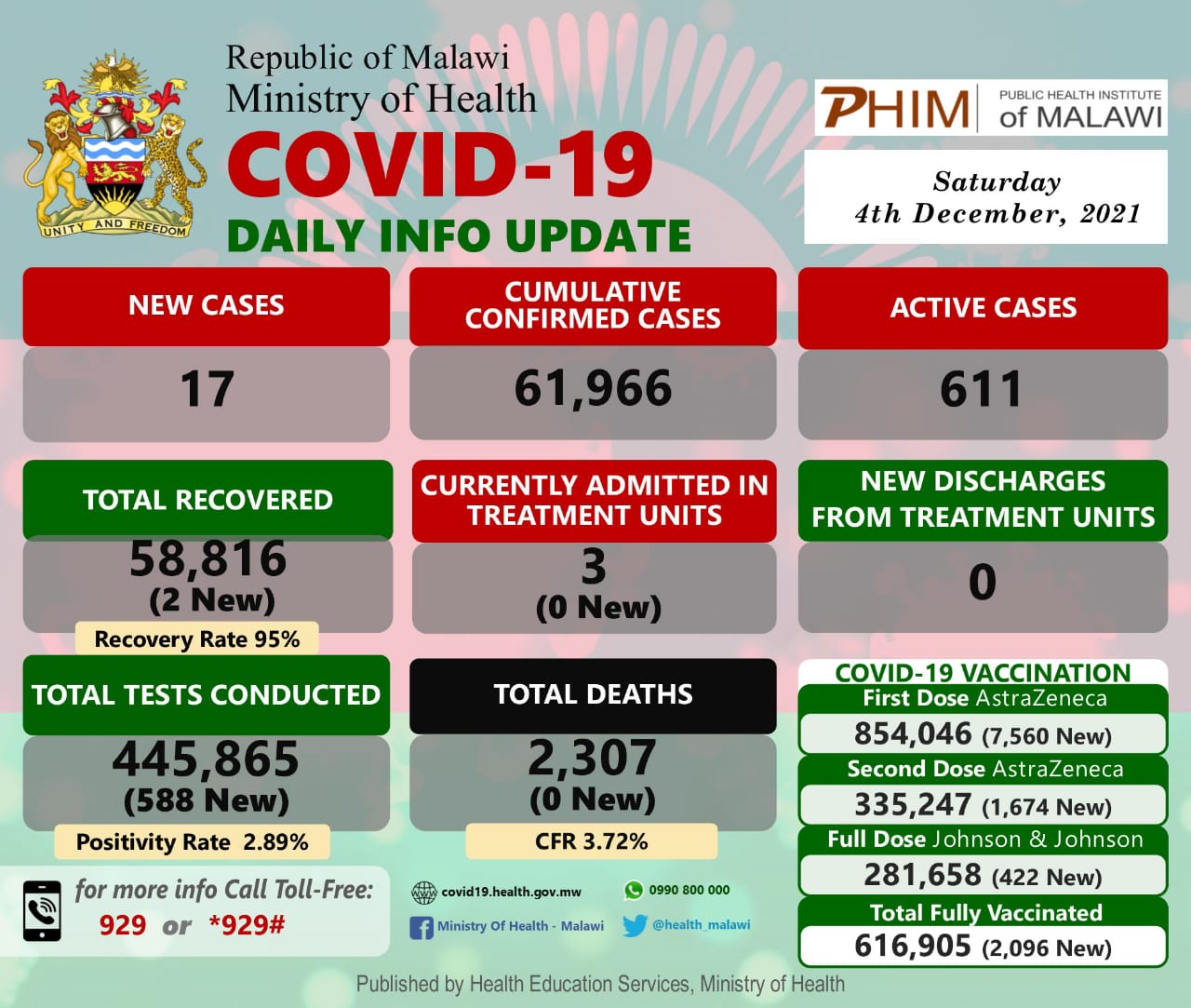 Coronavirus - Malawi: COVID-19 Daily Info Update (04 December 2021)