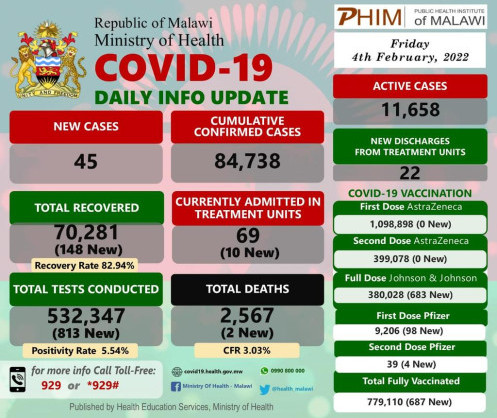 Coronavirus - Malawi: COVID-19 Daily Info Update (04 February 2022)