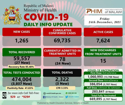 Coronavirus - Malawi: COVID-19 Daily Info Update (24 December 2021)