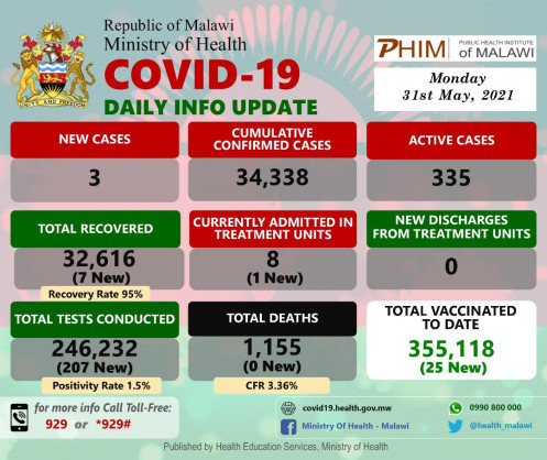 Coronavirus - Malawi: COVID-19 Daily Info Update (31 May 2021)