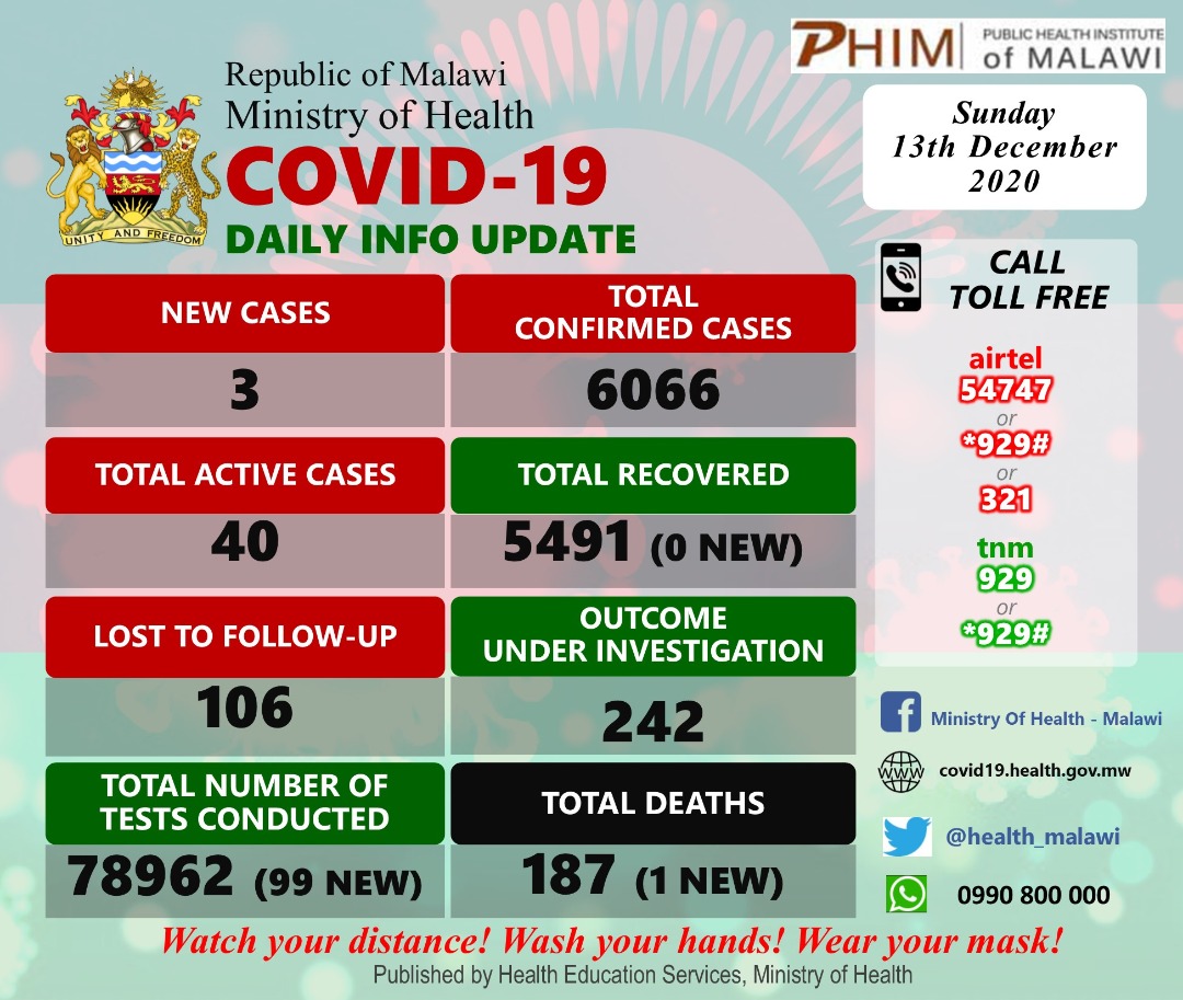 Coronavirus - Malawi: COVID-19 Daily Information Update (13th December 2020)