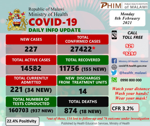 • Coronavirus - Malawi: COVID-19 update (8 February 2021)
