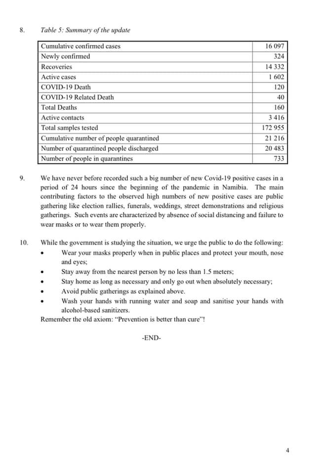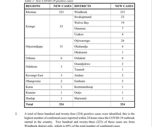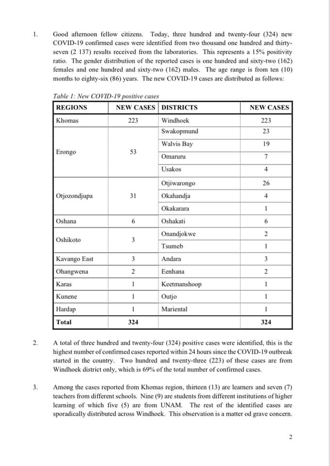 Honorable Minister Dr. Kalumbi Shangula announced 324  new COVID-19 cases, 2 COVID-19 deaths and 114 Recoveries.