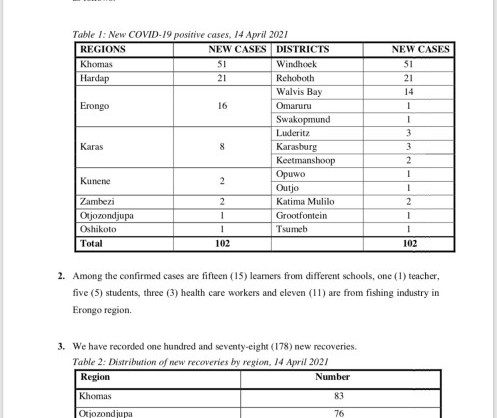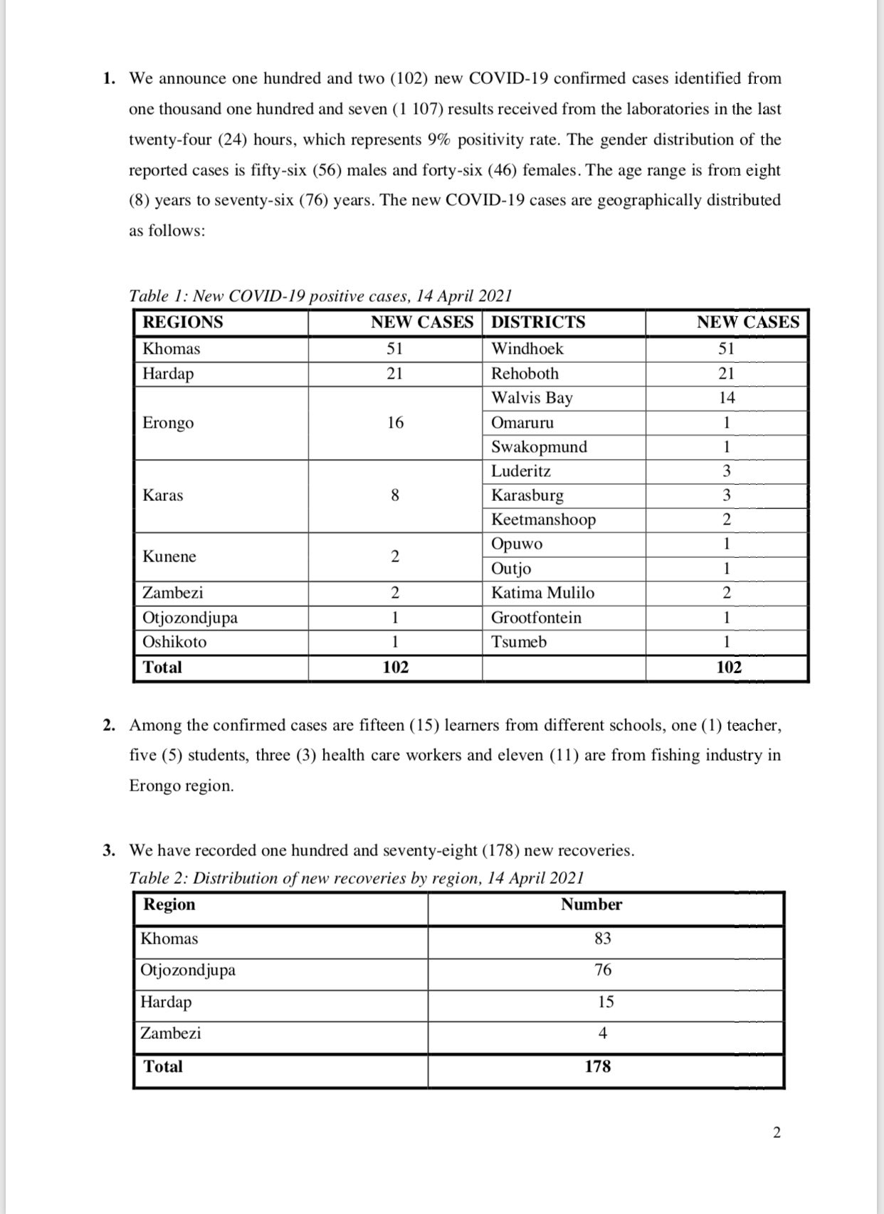 • Coronavirus - Namibia: COVID-19 update (14 April 2021) (2)