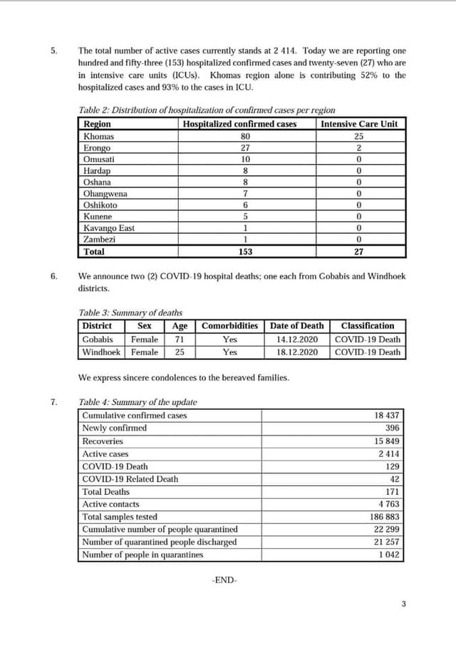 • Coronavirus - Namibia: COVID-19 Update 19 December 2020 (3)