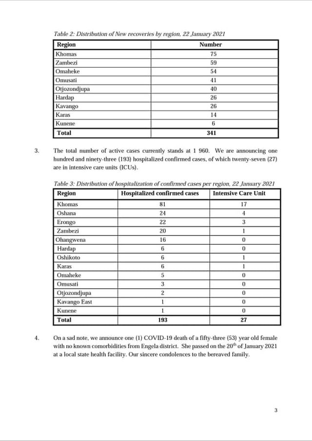 • Coronavirus - Namibia: COVID-19 Update 22 January 2021 (3)