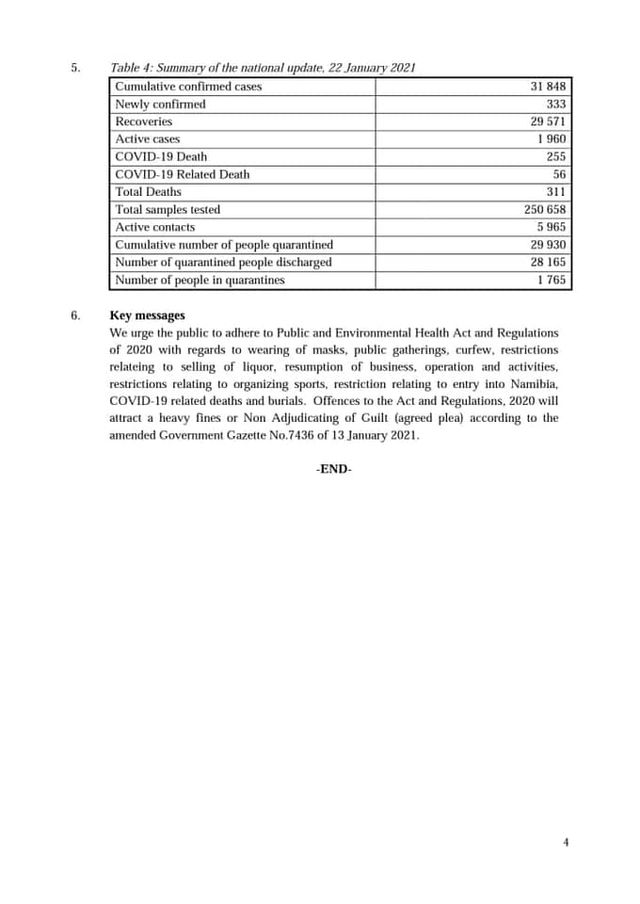 • Coronavirus - Namibia: COVID-19 Update 22 January 2021 (4)
