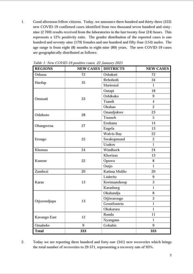 • Coronavirus - Namibia: COVID-19 Update 22 January 2021 (2)