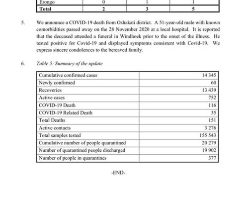• Coronavirus - Namibia: COVID-19 Update 29 November 2020 (3)