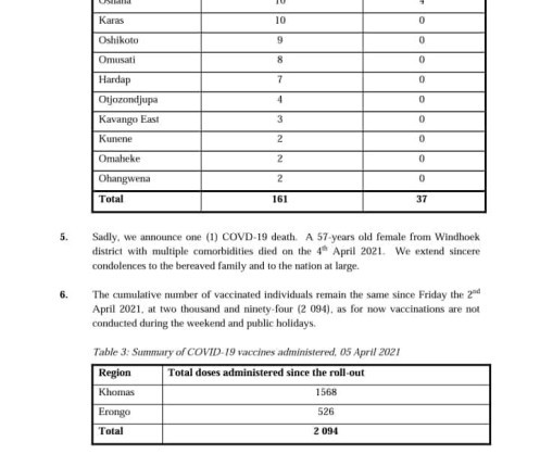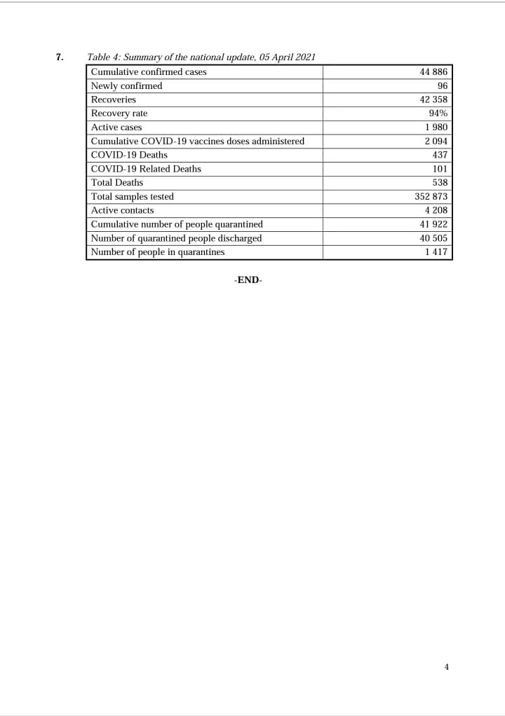 • Coronavirus - Namibia: COVID-19 update (5 April 2021) (4)