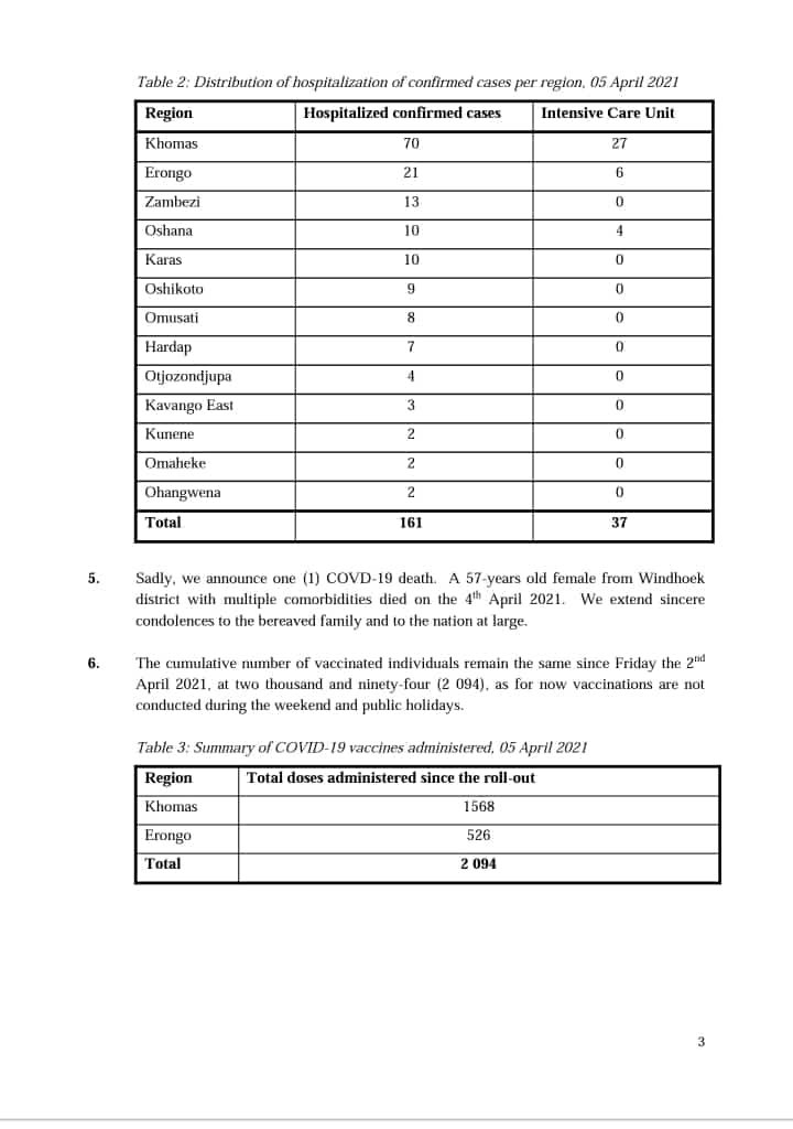 • Coronavirus - Namibia: COVID-19 update (5 April 2021) (3)
