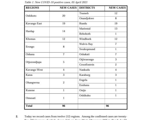 • Coronavirus - Namibia: COVID-19 update (5 April 2021) (2)