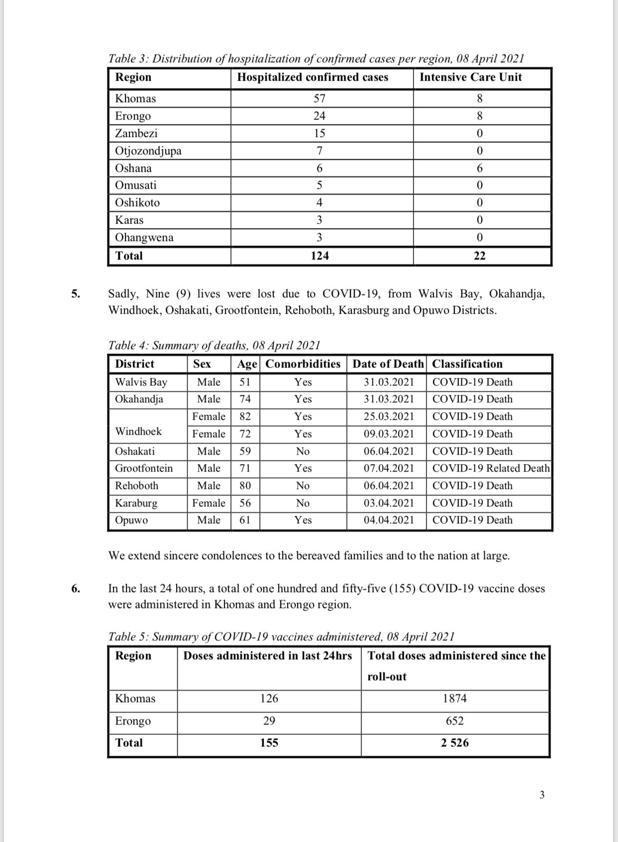 • Coronavirus - Namibia: COVID-19 update (8 April 2021) (3)