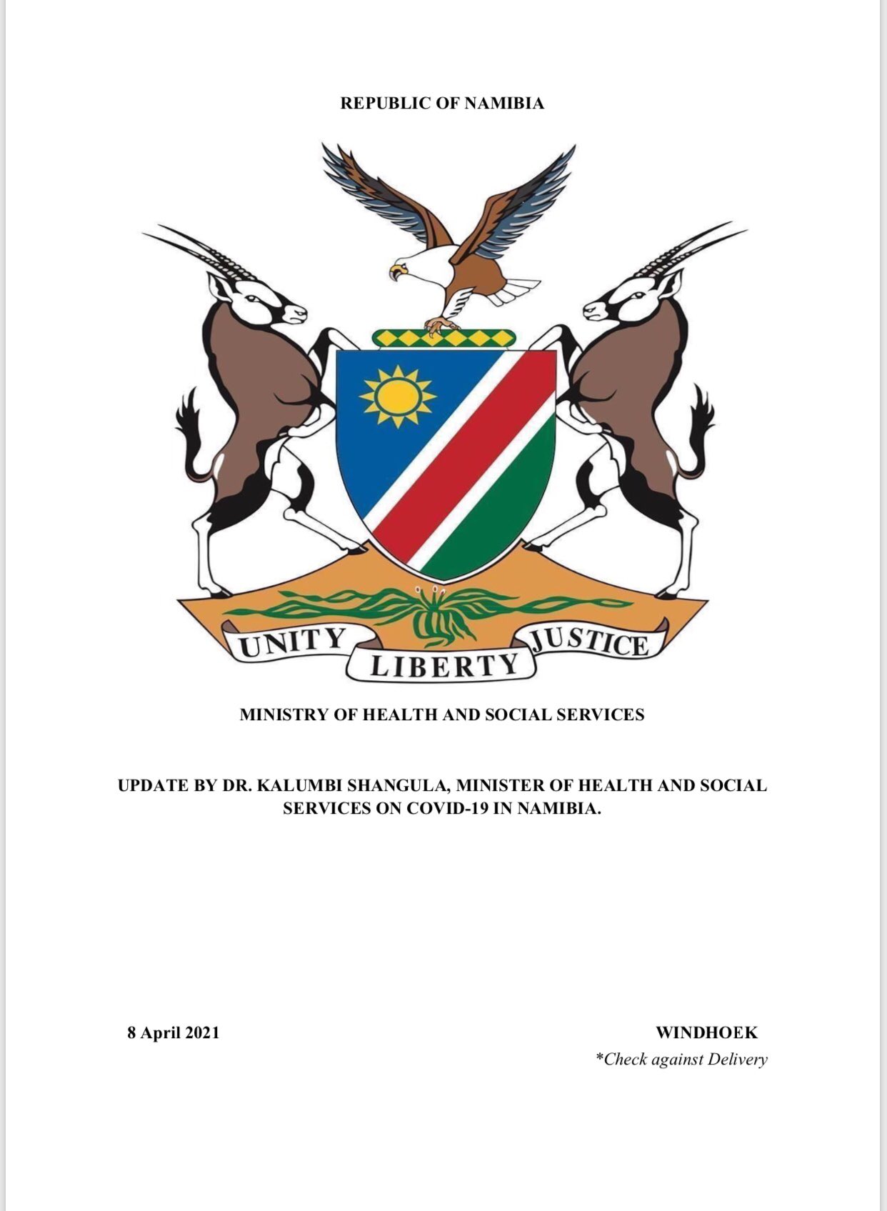 • Coronavirus - Namibia: COVID-19 update (8 April 2021) (1)