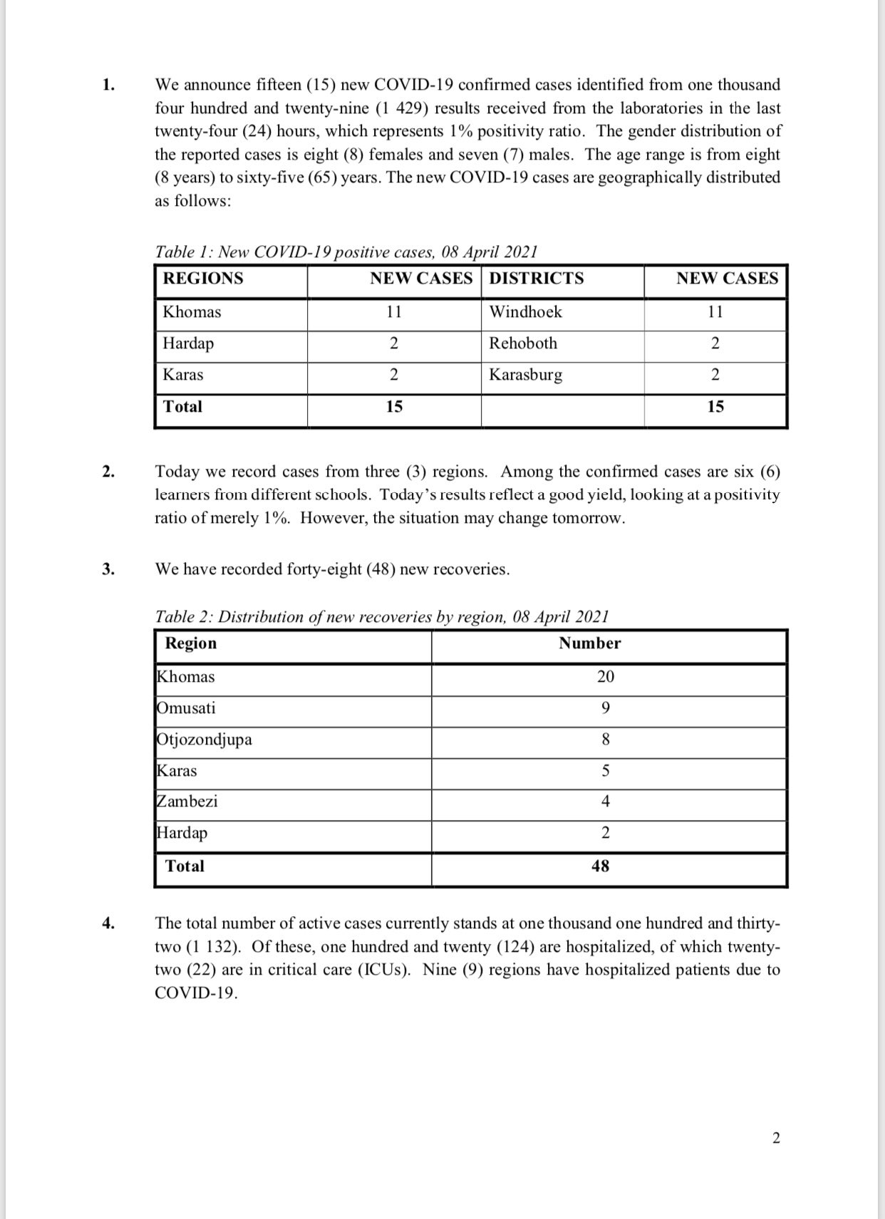 • Coronavirus - Namibia: COVID-19 update (8 April 2021) (2)