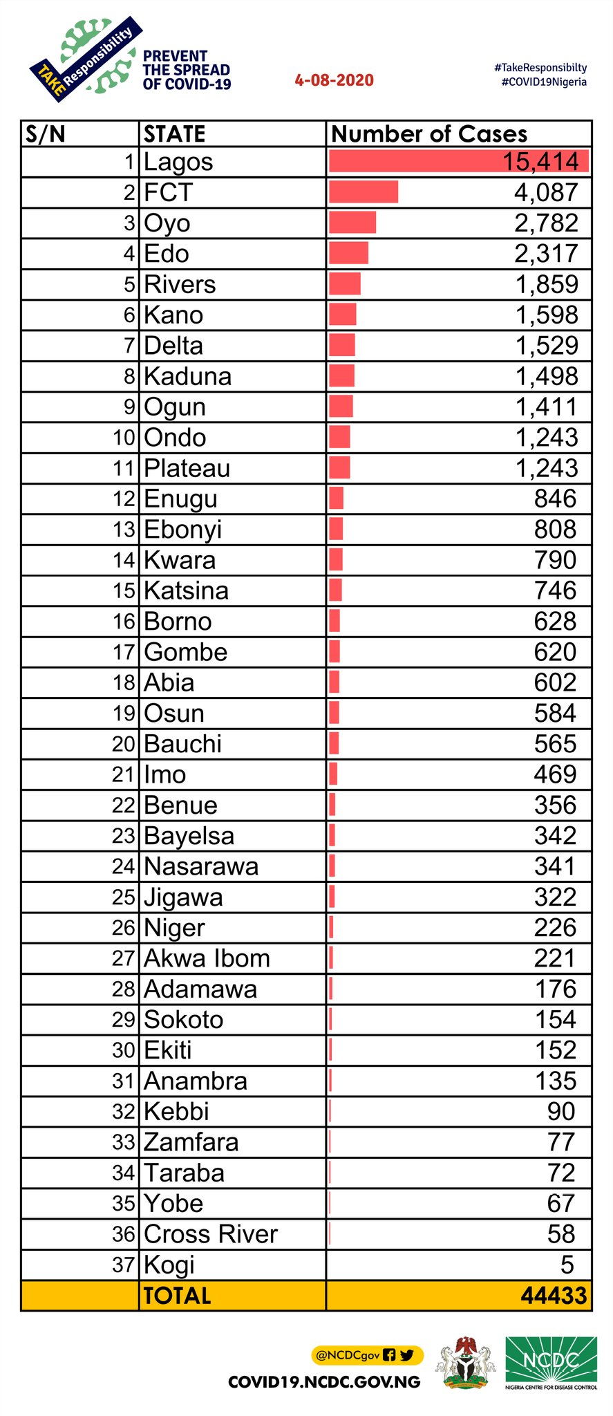 • Coronavirus - Nigeria: Breakdown of COVID-19 cases by state (4th August 2020)