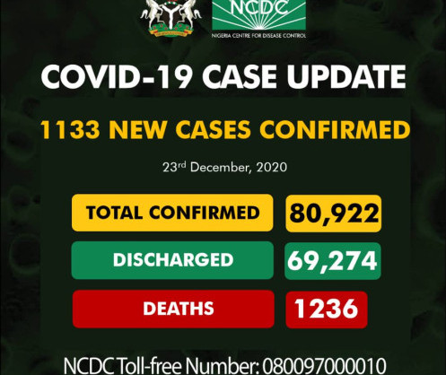 Coronavirus - Nigeria: COVID-19 case update (23rd December 2020)
