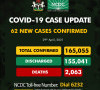 62 new cases of COVID-19 in Nigeria;