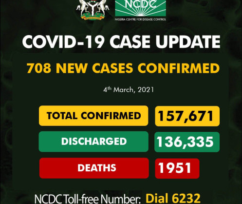 708 new cases of COVID-19 in Nigeria